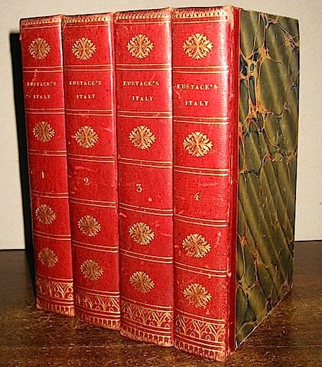 12mo (cm. 17,7), 4 Voll., 1 c.nn., XXIV-486(2) pp.; (2)508 pp.; (2)629(1) pp.; (2)512 pp. Complessive 11 tavv. f.t. (di cui 4 rip.). Belle legature coeve in mz. pelle rossa con titolo, numerazione e ricchi fregi in oro al ds. (minime tracce d’usura). Alcune macchie alle pp. 353-359 dell’ultimo vol. altrimenti ottimo esemplare. Ex libris araldico al contropiatto di ciascun volume.