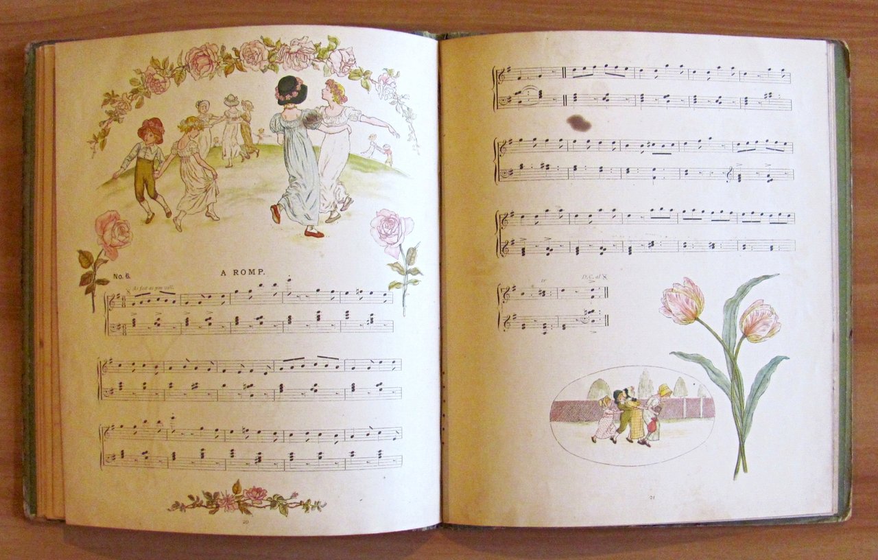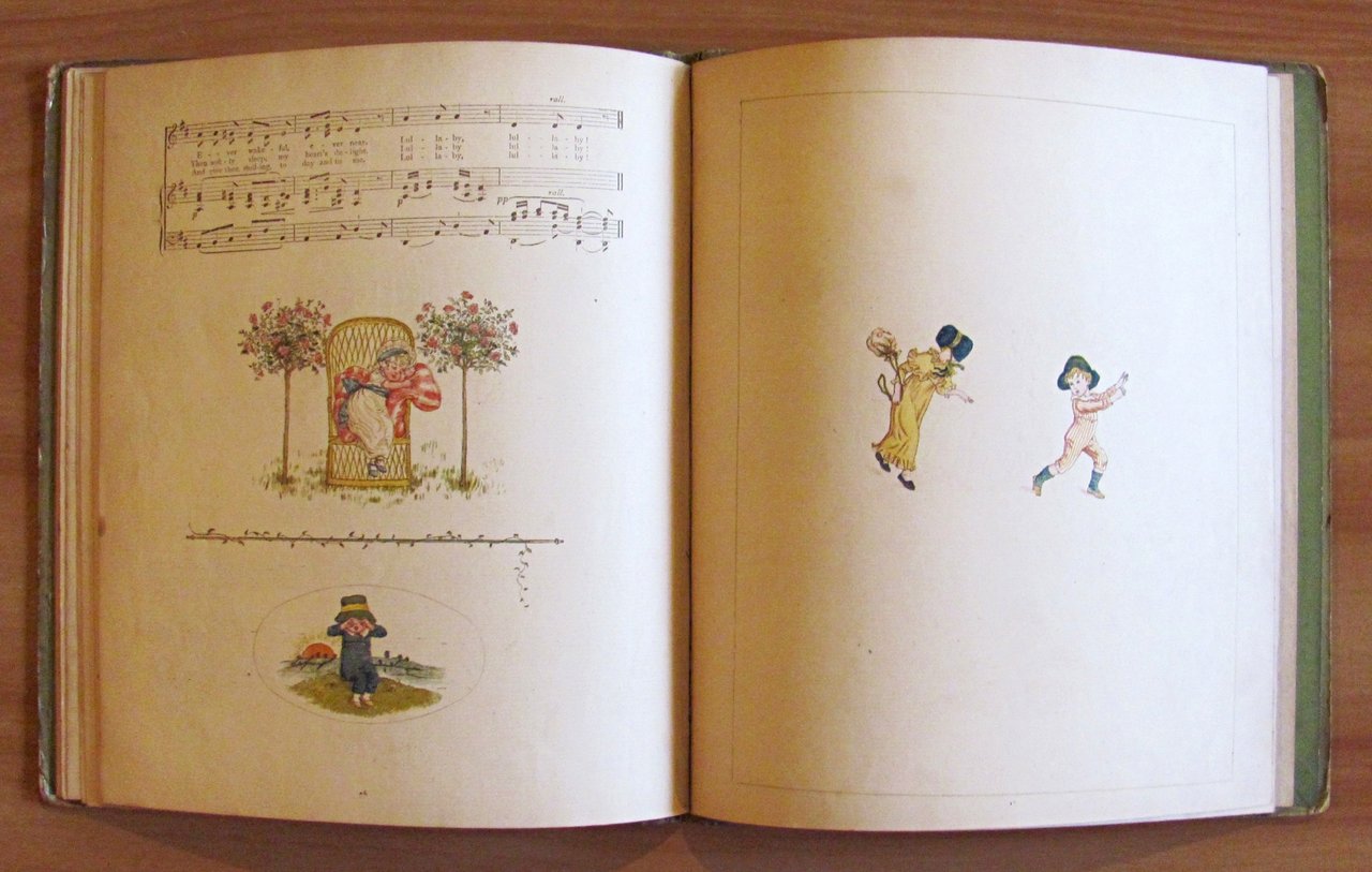 Deliziose illustrazioni a colori a tutte le pagine di Kate Greenaway. George Routledge & Sons - London, I edizione s.d. ma 1881. Cartonato editoriale finemente decorato ai piatti con dorso in tela originale. Lievissime abrasioni ai margini delle copertine e qualche lieve fioritura del tempo in poche pagine. Esemplare fresco, pulito e perfettamente legato. 21,5x25; pp.29. Raro e in Ottimo stato. , Molto buono (Very Good)