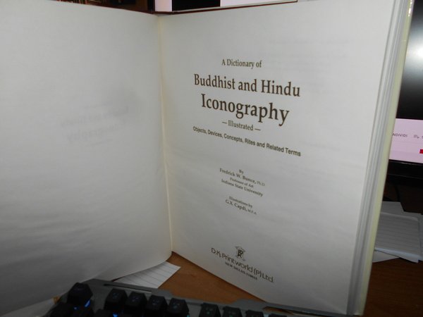 Fredrick W. Bunce. New Delhi, Printworld, 1997. A Dictionary of BUDDHIST and HINDU ICONOGRAPHY illustrated. Objects, Devices, Contcepts, Rites and Related Terms. In-8° grande, tela edit. bordeaux con titolo in oro al dorso e sovracopertina. xxviii, 473 pp. con numerose illustrazioni nel testo. Come nuovo. Uff. stanzetta mob. a sinistra. mob. 3 - 4
