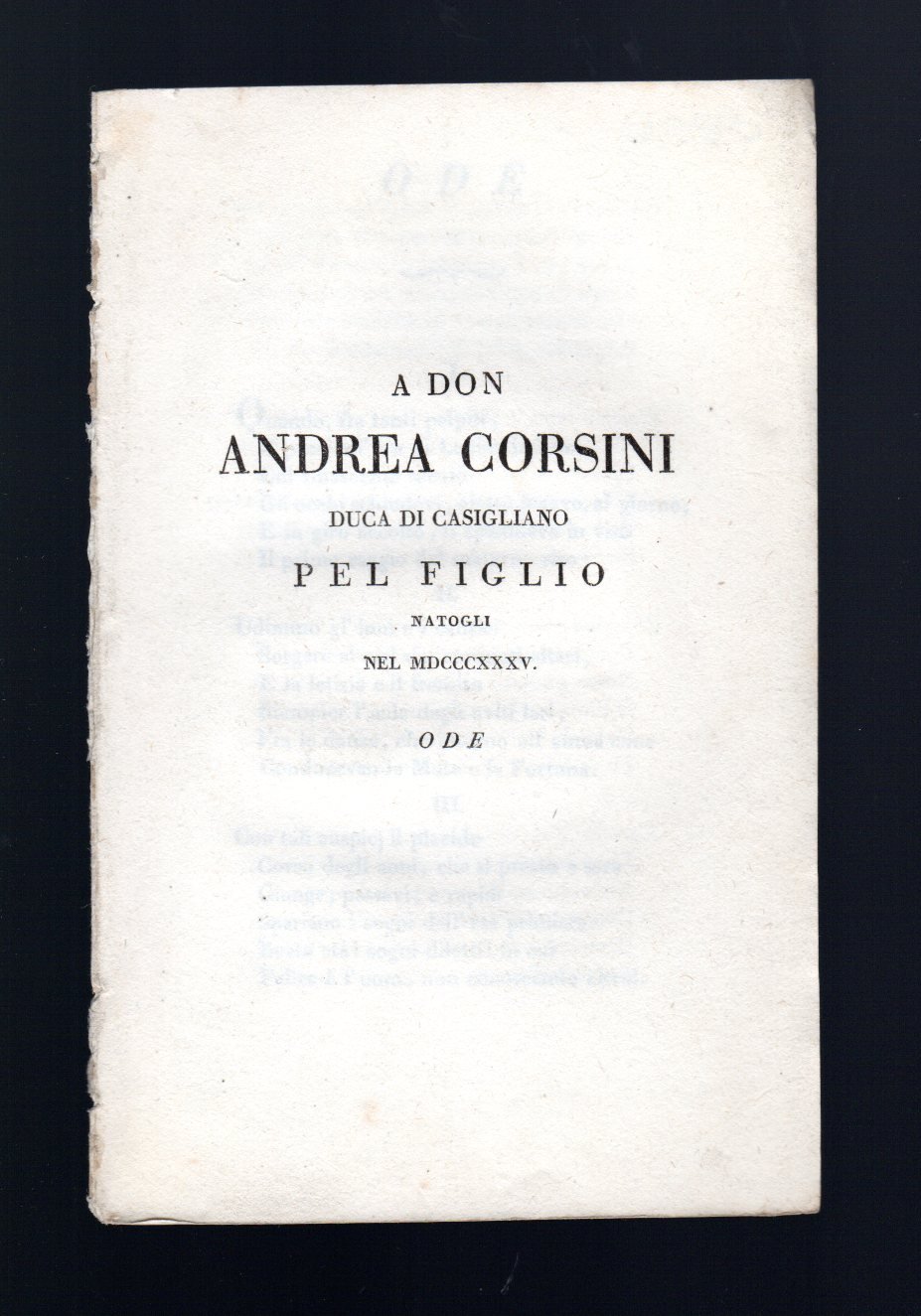 A Don Andrea Corsini Duca di Casigliano pel figlio natogli nel 1935 Ode