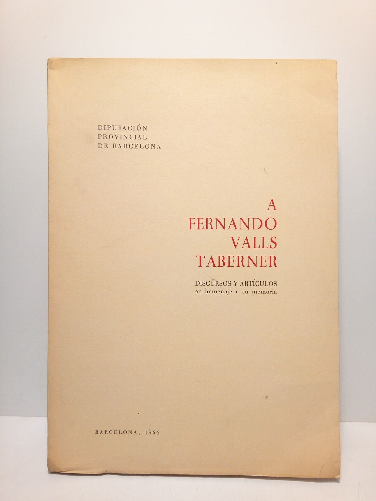 A Fernando Valls Taberner: Discursos y artículos en homenaje a su memoria