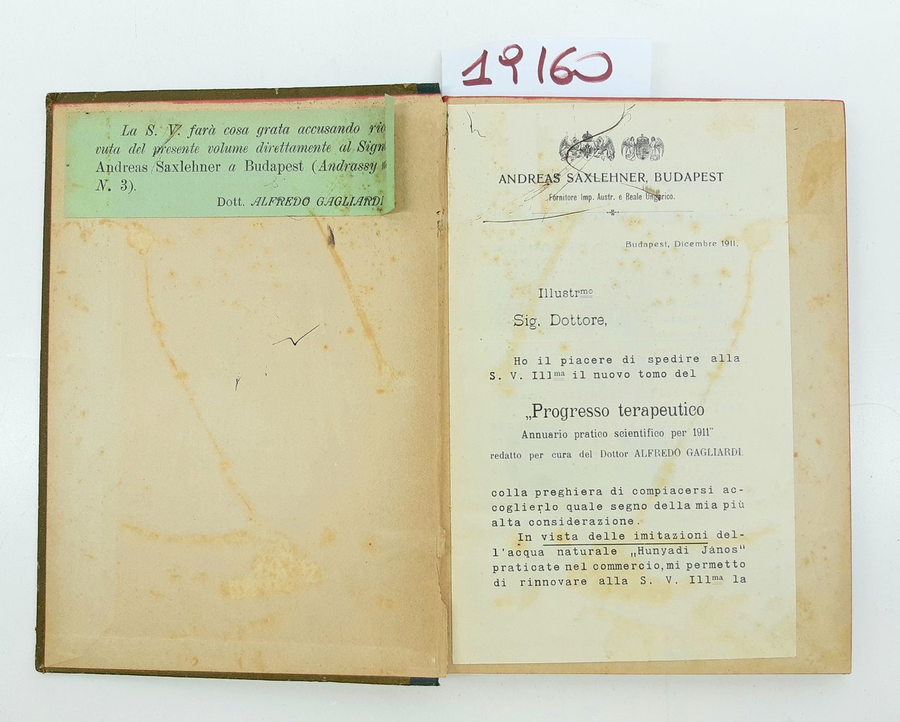 A. Gagliardi Il Progresso terapeutico annuario pratico scientifico per l'anno 1911 Rancati