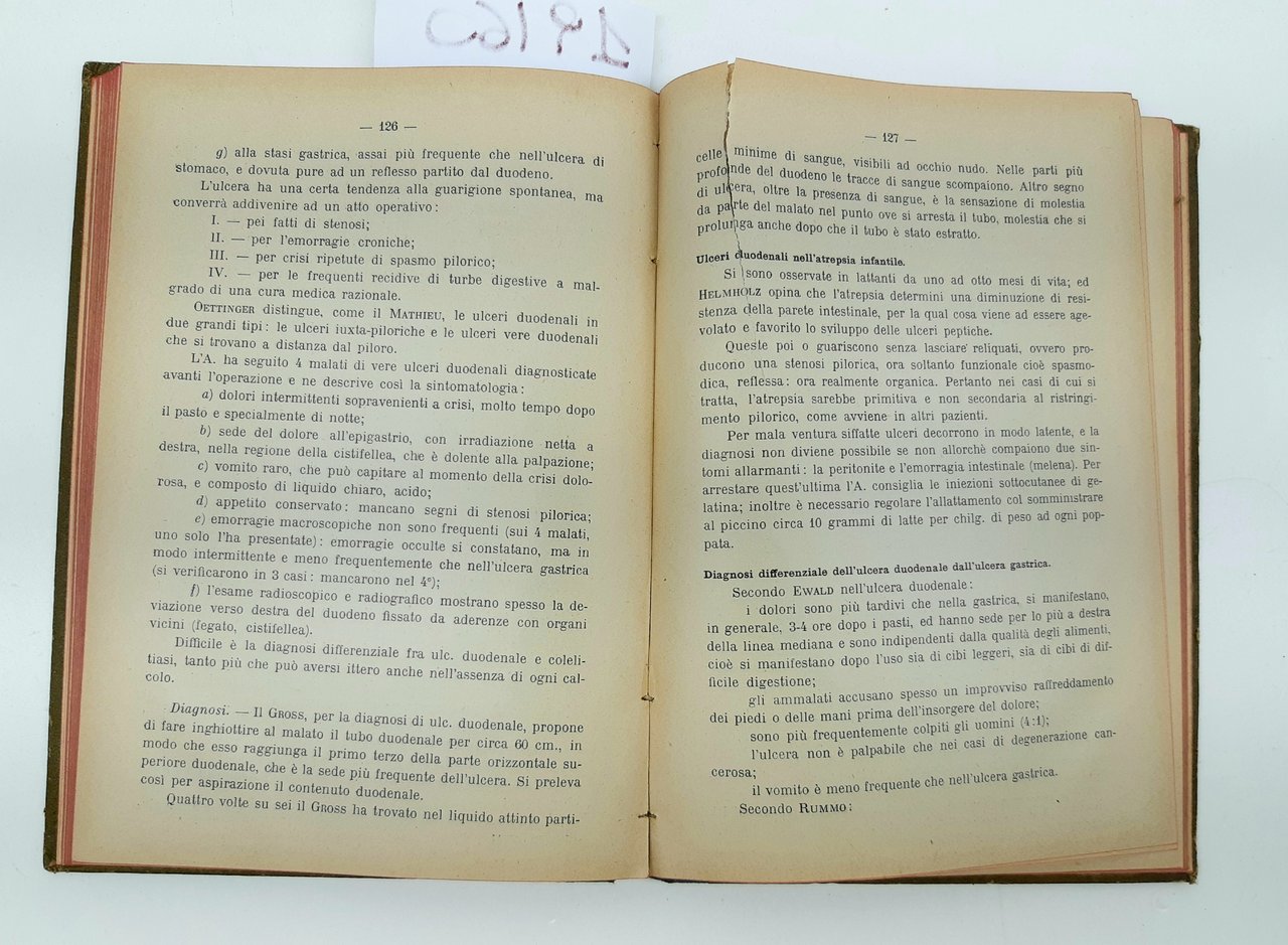 legatura rigida editoriale con titolo e fregi impressi al piatto anteriore, dorso in tela scolorita, in discreto stato, segni del tempo, tagli colorati in rosso, interno in discreto stato fioriture alle pagine interne che non vanno a disturbare la lettura, pagine leggermente brunite in particolar modo al margine superiore, a pagina 127 130 uno strappo di cm 7,8 vedere immagini, a pagina 210 uno strappo al margine interno in corrispondenza della legatura, vedere immagini, numero pagine 224 dimensioni cm 21,5 * 15,5 cm.