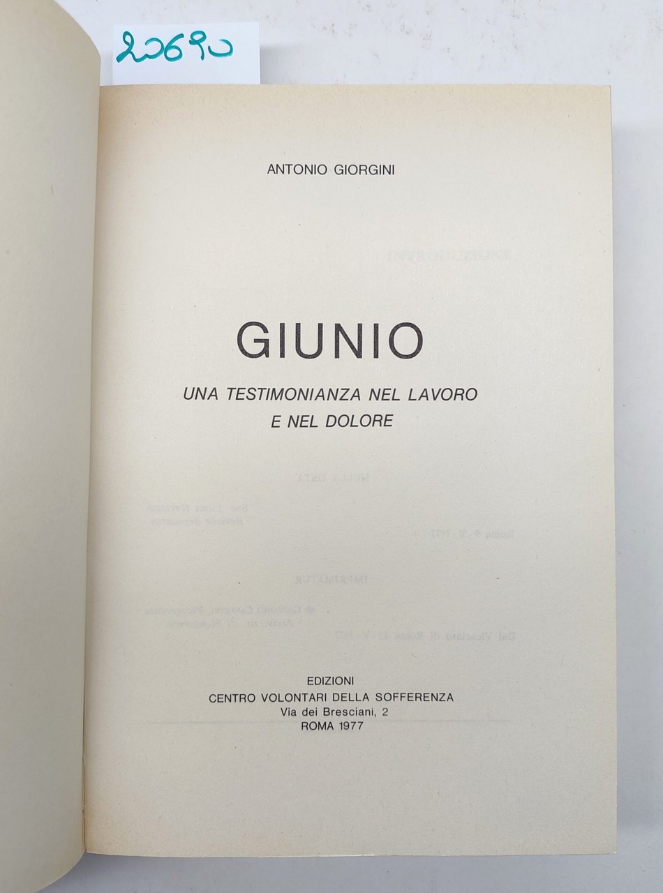 A. Giorgini Giunio una testimonianza nel lavoro e nel dolore Edizioni Centro Volontari Della Sofferenza 1977