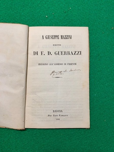 A Giuseppe Mazzini, scritto da F. D. Guerrazzi, Intorno all'assedio di Firenze.