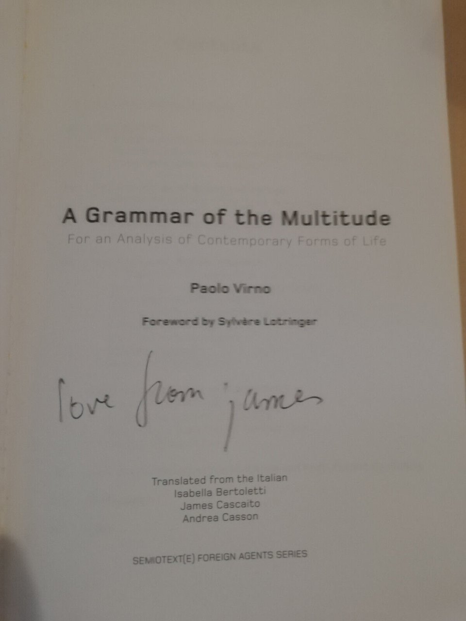 A grammar of the moltitude, Paolo Virno, 2004, Semiotext(e), in english