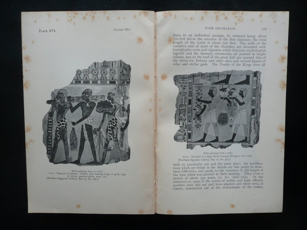 Guida, British Museum - A guide to the Egyptian collections in the British Museum with 53 plates and 180 illustrations in the text Printed by the Order of the Trustees, 1909, cm 21,5x14, pp. 325 con 53 tavole in b/n f. t. e 180 fig. in b/n n. t.; brossura ed. Etichetta della Ulrico Hoepli - Milano applicata al margine inf. della br. ant. Prima bianca con vecchia dedica a penna e con una breve annotazione a matita rossa. Testo in inglese. Condizioni di conservazione Esemplare in condizioni pi√π che discrete con tracce d'uso; br. post. con leggera traccia di piega longitudinale; dorso fessurato con alcuni piccoli strappetti e mancanze, con conseguente allentamento delle cuciture dei fascicoli. Interni buoni con alcune piccole lievi bruniture disposte prevalentemente ai margini delle pagine. Testo in inglese. Con 53 belle tavole in bianco e nero fuori testo, e con 180 illustrazioni in bianco e nero nel testo. SETT90.L8322 N