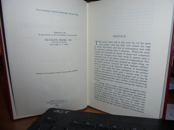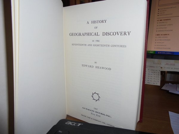 Edward, Heawood. New York, Ocatagon Books Inc., 1965. A History of Geographical Discovery in the Seventeenth and Eighteenth Centuries. In-16° grande, tela rossa e oro. xii, 475 pp. con illustrazioni nel testo e 2 tavole ripiegate fuori testo, Come nuovo. Uff. B - I - 7
