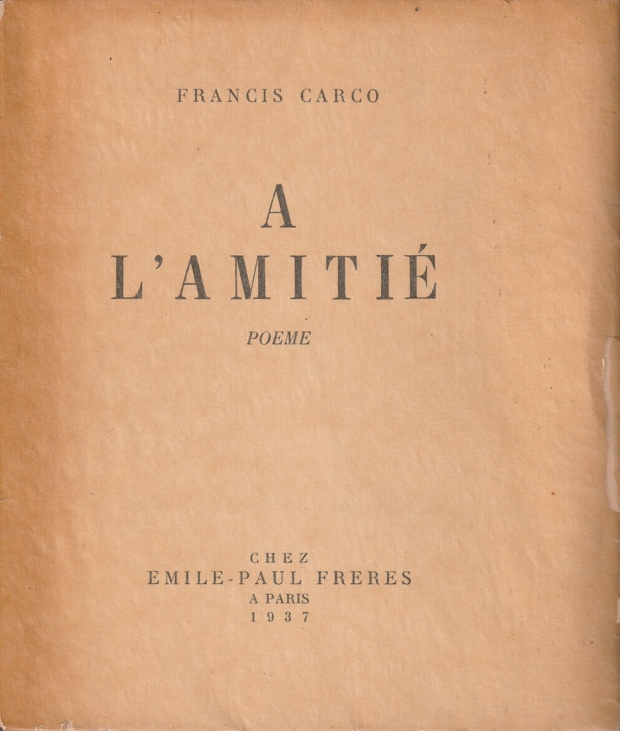 Brossura editoriale muta, sovraccoperta incamiciata, esemplare n. 11 della tiratura di 15 stampati su carta Hollande, testo in francese, conserva il pergamino protettivo, in stato molto buono.