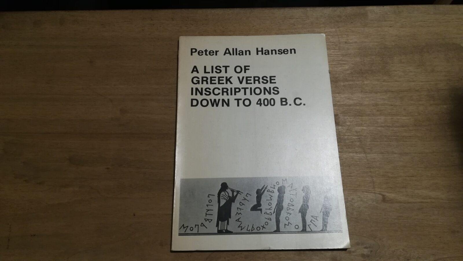 A List of Greek Verse Inscriptions down to 400 BC
