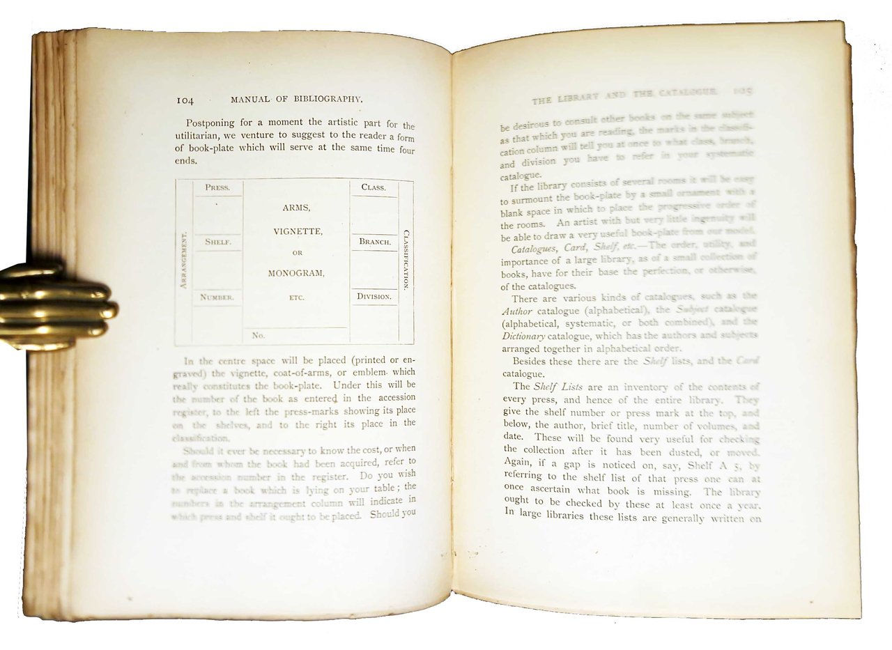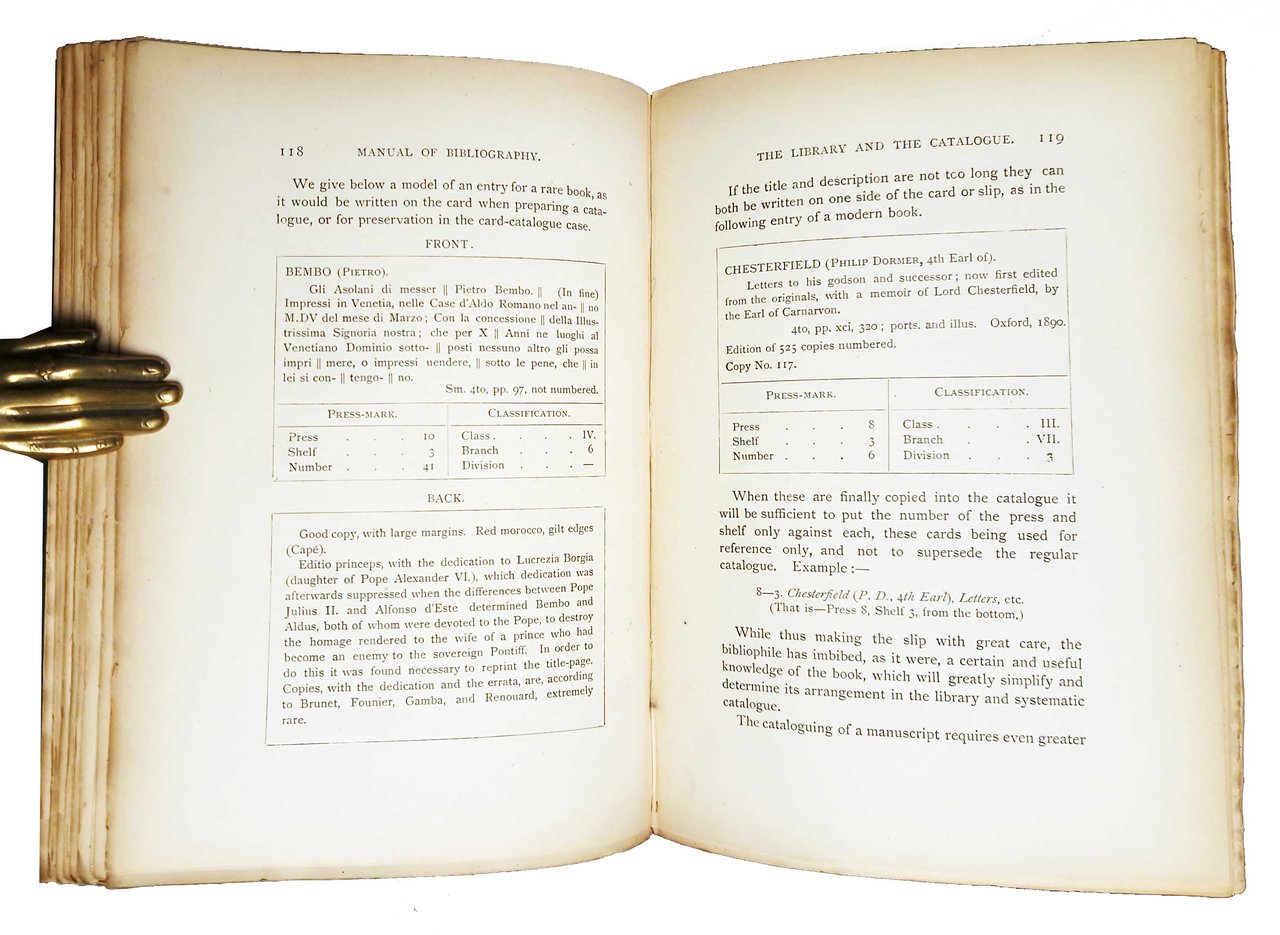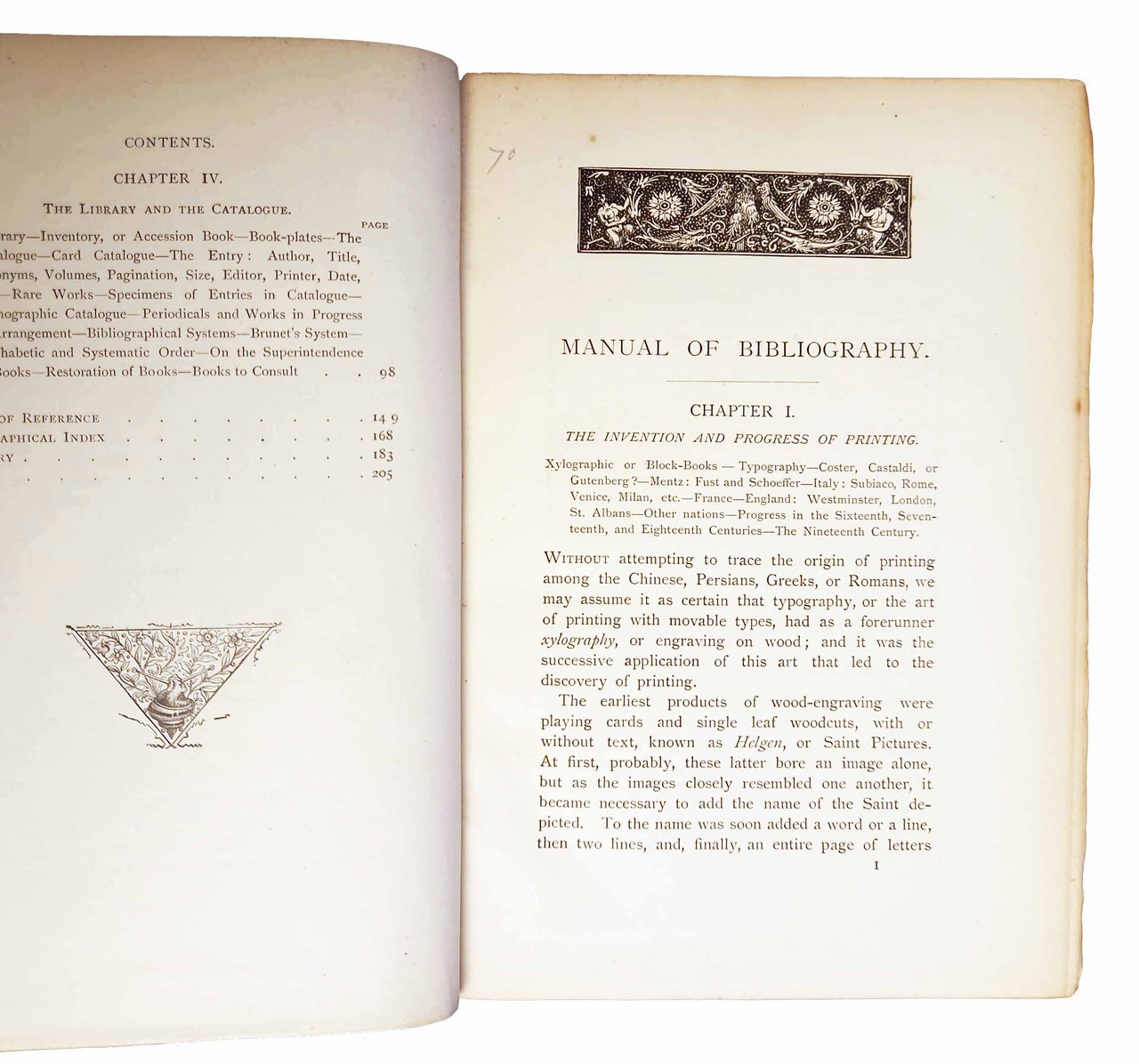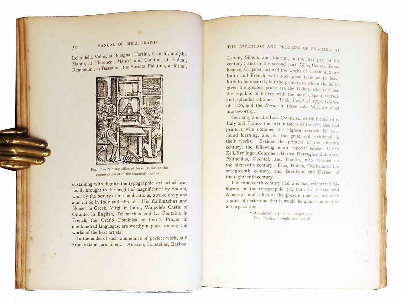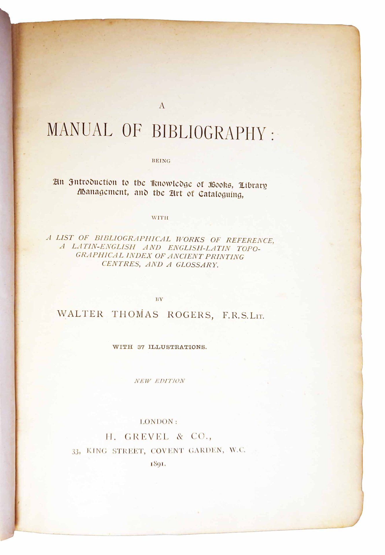 A manual of bibliography: being an introduction to the knowledge of books, library management, and the art of cataloguing, with a list of bibliographical works of reference, a Latin-English and English-Latin topographical index of ancient printing centres, and a glossary. By Walter Thomas Rogers, F.R.S.Lit., with 37 illustrations.