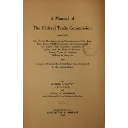 A manual of the Federal Trade Commission presenting the origin development and construction of the anti-trust law with decisions upon the constitutional and unfair trade questions involved together with the rules of practice forms texts of statutes debates in Congress and complete memoranda of anti-trust cases instituted by the United States