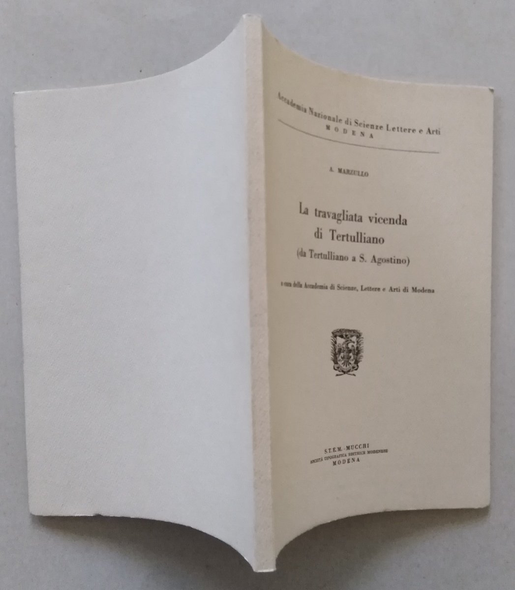 A. Marzullo, La travagliata vicenda di Tertulliano (da Tertulliano a S. Agostino) STEM Mucchi, Modena 1977; cm. 24x17, pp. 71; a cura della Accademia di Scienze, Lettere e Arti di Modena; br. ed. Condizioni di conservazione Esemplare in buono stato con leggere tracce d'uso; interni con leggeri accenni di ingiallimento ai margini. SETT144.L14332 MT
