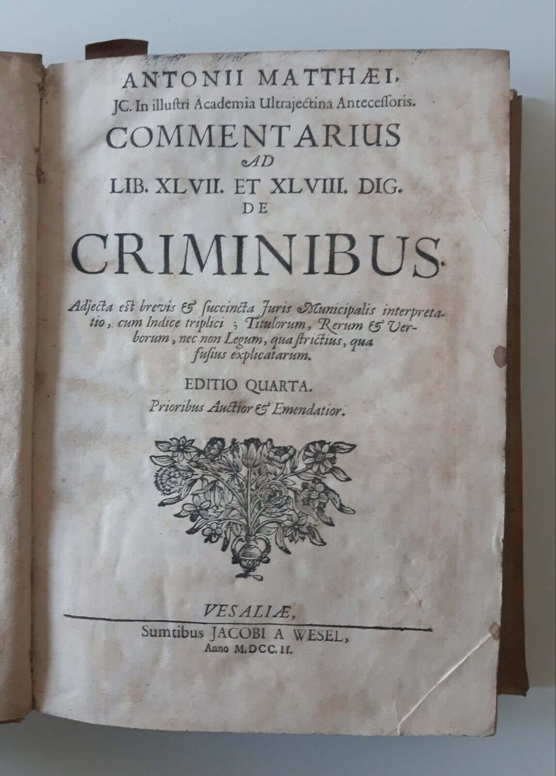 A. MATTHAEI COMMENTARIUS DE CRIMINIBUS VESALIAE JACOBI 1702