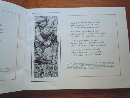 Prima edizione fuori commercio, in Venezia, per i Tipi di U. Bortoli, aprile 1924; in 8° oblungo, pp. 140. Testo entro filetto rosso, illustrazioni in nero. Su carta patinata. Ottime condizioni.
