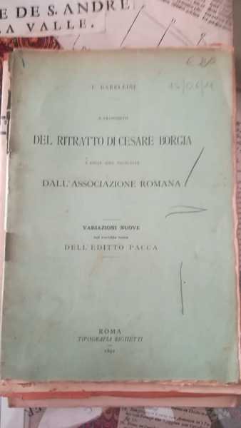 A proposito del ritratto di Cesare Borgia e delle idee enunciate dall'associazione romana. Variazioni nuove nel vecchio tema dell'editto Pacca