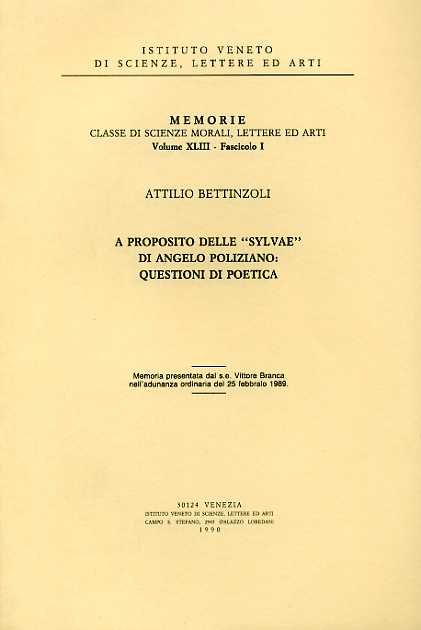 Memoria presentata dal s.e. Vittore Branca all'Adunanza ordinaria del 25 febbraio 1989. Venezia, Ist.Veneto di Scienze, Lettere ed Arti 1990, cm.16x24, pp.95, brossura Stato di nuovo. Coll.Memorie della Classe di Scienze Morali, Lettere ed Arti,43,f.1. STATO: NUOVO.