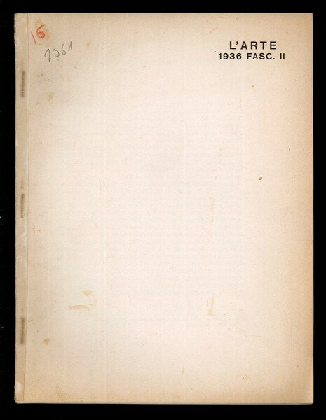 Opuscolo vintage. Estratto da L'Arte - 1936 - Fasc. II. Correzioni a matita all'interno del testo. Illustrazioni in bn fuori dal testo. Segni di matita e matita colorata in copertina. Usura da scaffale. Ordinario segno del tempo.