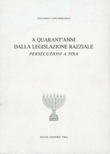 37 p., [8] p. di tav. : ill. ; 24 x 17 cm. Il testo è una versione ampliata di una relazione tenuta in una conferenza a Pisa nel novembre 1979. Si analizza in modo particolare la rivista fascista pisana «L'Idea fascista» nel periodo tra il 1937-1943, concentrandosi su articoli, commenti e propaganda a sostegno della legislazione e della politica razziale antisemita. Brossura editoriale, coperta illustrata in cartoncino flessibile plastificato lucido. All'interno 8 pagine di illustrazioni in b/n su carta patinata lucida. Codice libreria 7630.