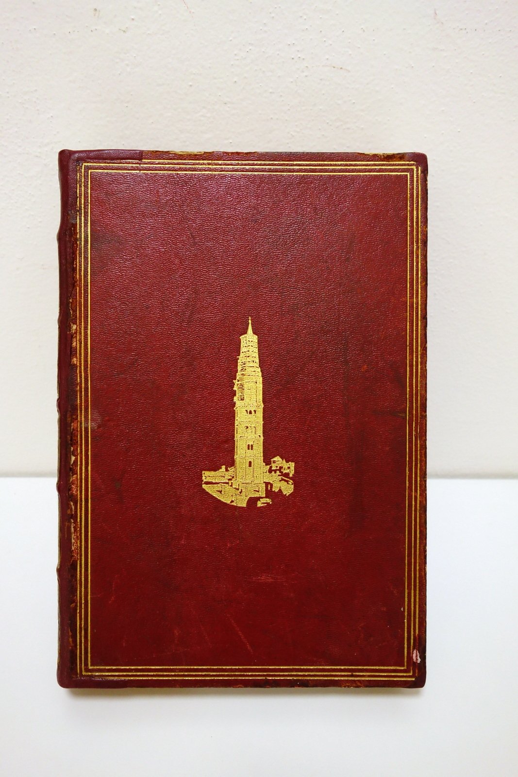 Celebre e rara edizione originale di "lusso", con rilegatura in marocchino di Rolando Gozzi. Esemplare completo di tutte le belle tavole del Tirelli e della cartolina celebrativa della festa mutino - bononiense alla Fossalta.