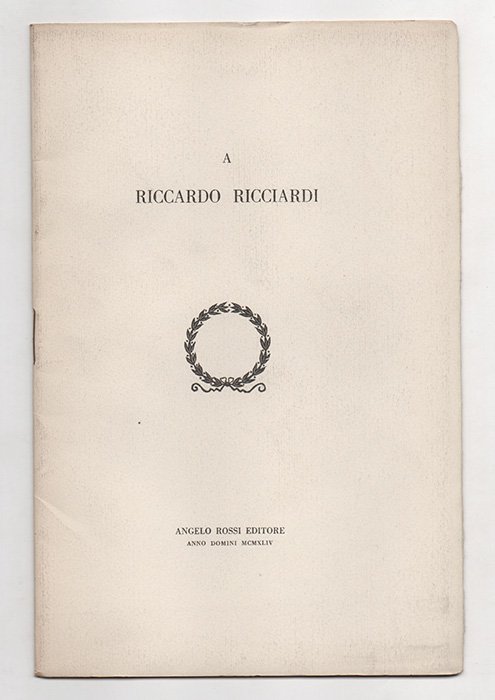 LIBROEdizione originale.Ottimo esemplare (leggeri segni al piatto posteriore).«Edizione di 88 esemplari non venali»: rarissimo. Raffinato omaggio degli amici del celebre editore, stampato e pubblicato dallo storico tipografo Rossi, fondatore della stamperia «Arte tipografica». Tra i sottoscrittori dell’impresa Ada Croce, Gino Doria, Tammaro De Marinis, Lorenzo Giusso, Raffaele Mattioli, Alessandro Longo.