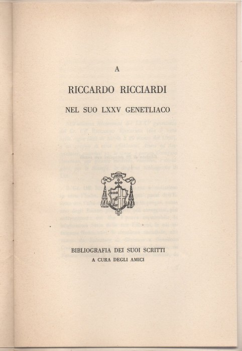 A Riccardo Ricciardi nel suo LXXV genetliaco. Bibliografia dei suoi scritti a cura degli amici