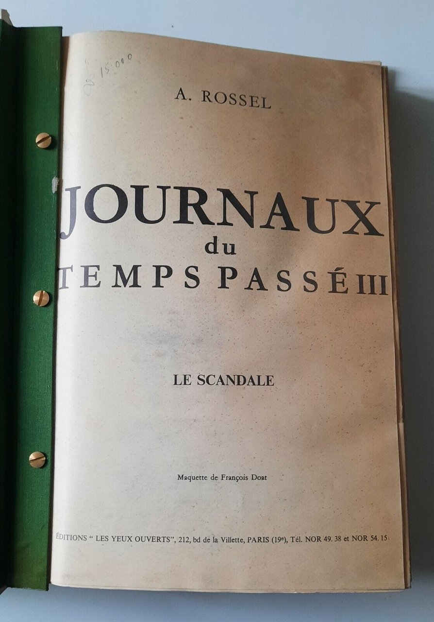 A. ROSSEL JOURNAUX DU TEMPS PASSE' III LE SCANDALE EDITIONS YEUX OUVERTS 1967In 4°, pag. n.n., legatura editoriale, copertina illustrata, ill. in b/n.In ottime condizioni, lievi segni alla copertina.