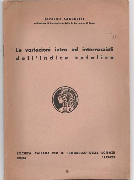 A. SACCHETTI LA VARIAZIONI INTRA E INTERRAZZIALI DELL'INDICE CEFALICO SOC. ITALIANA PER IL PROGRESSO DELLE SCIENZE INC. CAMBELLOTTI 1943 L5571 COPERTINA MORBIDA EDITORIALE CON LIEVI FIORITURE AL PIATTO E PIEGHE AI MARGINI, UNA LEGGERA BRUNITURA, INTERNO IN BUONO STATO LEGGERA BRUNITURA AL MARGINE ESTERNO DELLE PAGINE, N. PAG. 56, UN PICCOLO STRAPPO AL MARGINE ESTERNO DI POCHI MM ALLE ULTIME TRE PAGINE CM. 26,3 X 18