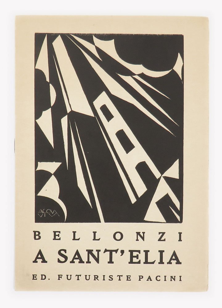 LIBROEdizione originale.Eccellente esemplare, fresco, pulito e senza strappi: rarissimo a maggior ragione in queste condizioni.Rarissima placchetta ornata dalla splendida xilografia di copertina, opera dell’artista ligure Giovanni Acquaviva. Nei repertori istituzionali online si trovano solo le copie della Centrale di Firenze e di Apice a Milano; all’estero figura in importantissime raccolte (Getty, Yale, Wolfson, Centre Pompidou). -- Canzone versolibera pubblicata assieme alla raccolta poetica «Le studentesche», anch’essa interamente illustrata dall’artista ligure con la stessa tecnica. Le due edizioni siglate «Edizioni futuriste Pacini» testimoniano l’esistenza di un progetto volto alla pubblicazione di opere futuriste presso lo storico editore-stampatore pisano, non proseguito tuttavia oltre queste due uscite. -- «I primi anni ’30 sono gli anni della piena ribalta futurista di Giovanni Acquaviva, con le sue tavole bianco-nere bidimensionali, geometriche, sintetiche, allungate ed inclinate in prospettive di ascendenza addirittura liberty, oppure risolte in precise e voluttuose curve che guardano Balla e Depero. Di grande impatto e felicità espressiva è la tavola in copertina della placchetta “A Sant’Elia” di Fortunato Bellonzi (1930), realizzata in xilografia, dove curve e linee convivono in un’intensa composizione che combina diverse suggestioni» (I futuristi e l’incisione, p. 94).Cammarota, Futurismo, 31.3; Echaurren, Futurcollezionismo, pp. 45-48; Fanelli & Godoli, Il futurismo e la grafca, p. 118 n. 137; I futuristi e l’incisione (Lucca 2018), n. 102