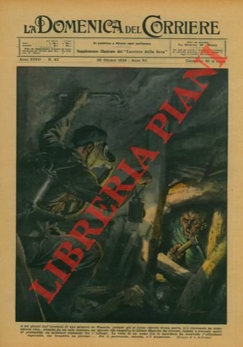 La tavola di copertina, a colori, e quella opposta ma non descritta, de "La Domenica del Corriere", n. 43 del 28/10/1934