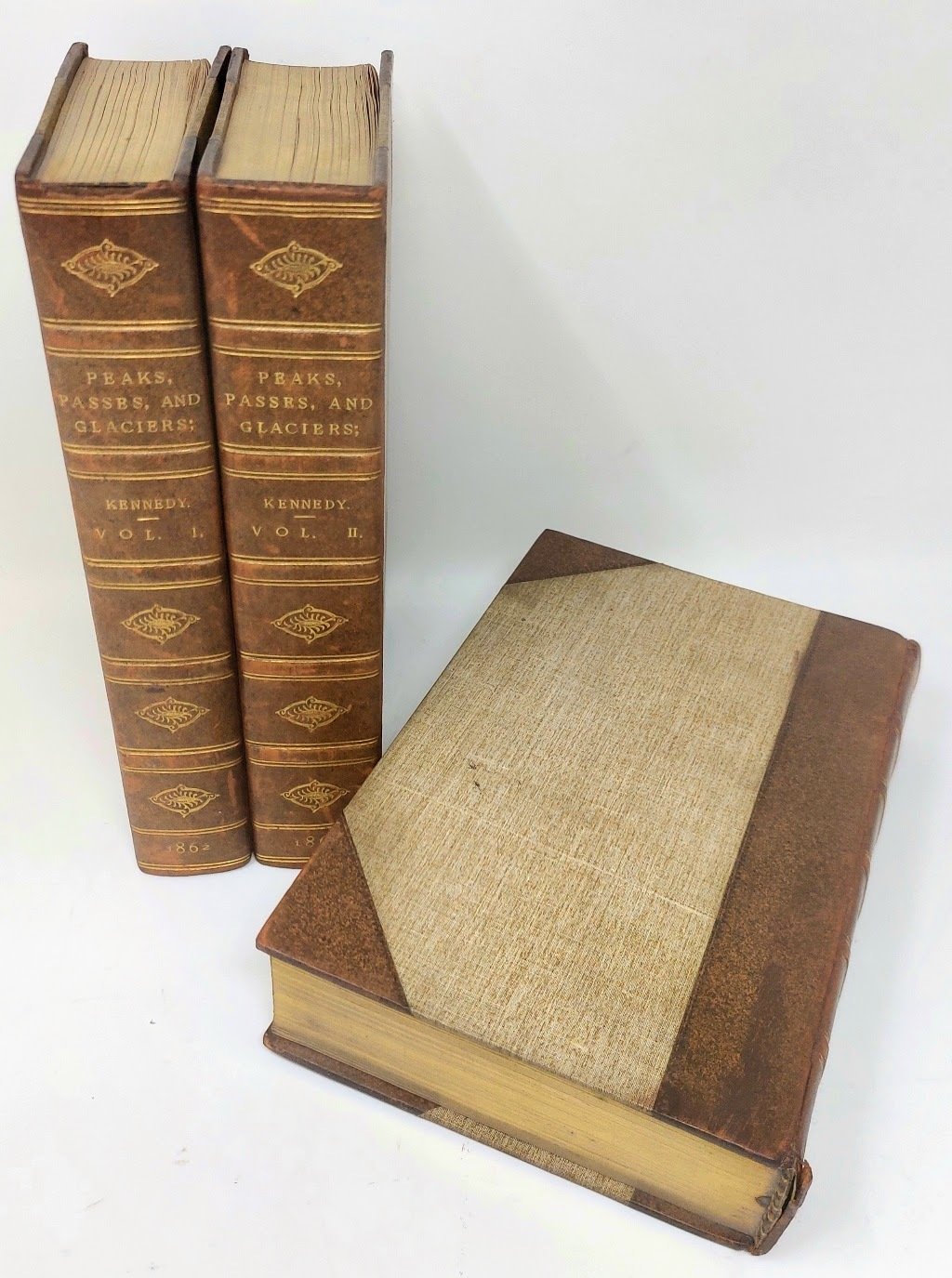 >3 vol. in-8 (mm 205x130), pp. XX, 532; XVI, 445; VIII, 541; robusta legatura mezza pelle e angoli, titolo e fregi oro ai dorsi, taglio super. dor. (sono errate le scritte sui dorsi relativamente alla numeraz. dei vol.: la prima serie edita da J. Ball, ad esempio, reca il numero III ed il nome ''Kennedy''sul dorso). Prime due serie di quello che viene considerato il primo periodico alpinistico, voluto dall'alpinista John Ball e dall'editore William Longman, ambedue tra i promotori della più antica associazione alpinistica, l'Alpine Club, fondata il 22 dic. 1857 e da subito presieduta dallo stesso Ball, sotto l'egida della quale si realizzò l'idea di ''riunire in un volume annuale le relazioni dell'attività alpinistica dei soci... Il largo successo di questa pubblicazione ebbe una grande influenza nella diffusione e nello sviluppo dell'alpinismo'' (Garimoldi n. 46). La seconda serie è in prima edizione, mentre la prima, pur recando l'anno 1859, ha l'indicazione ''fourth edition'' (ma, come avverte lo stesso Perret al n. 66, le edizioni seconda-quarta apparvero a distanza di qualche mese dall'originale). Sono complete del ricco corredo illustrativo formato complessivamente da gran numero di vignette, 23 carte topografiche delle Alpi a colori f.t., alcune più volte ripieg., 8 vedute in cromolitografia e 12 in silografia f.t. Assieme raro e ricercato (alla completezza di tutto il pubblicato manca solo il vol. della terza serie pubblicato nel 1932): ''one of the most famous titles in mountaineering literature'' (Neate). Contengono vari significativi contributi dei pionieri dell'alpinismo, da Ball a Tyndall, da Kennedy a Whymper, da Mathews a Whitwall, e altri. In ottimo stato, con usuali fioriture. Perret 66, 67 e 68: «Les quatre volumes constituent un ensemble remarquable, rare et très recherché». Neate A32, A34, A36. Mathews 314. ACL 8.