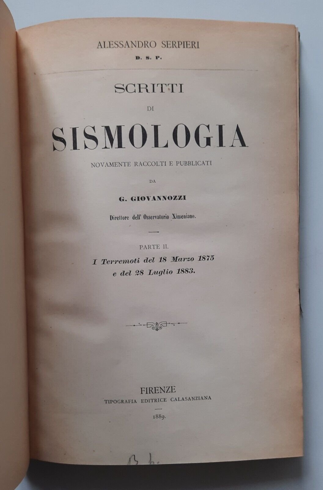 A. SERPIERI SCRITTI DI SISMOLOGIA PARTE 2° FIRENZE CALASANZIANA 1889