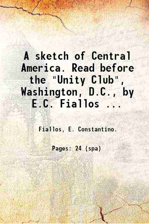 A sketch of Central America. Read before the "Unity Club", Washington, D.C., by E.C. Fiallos . 1890