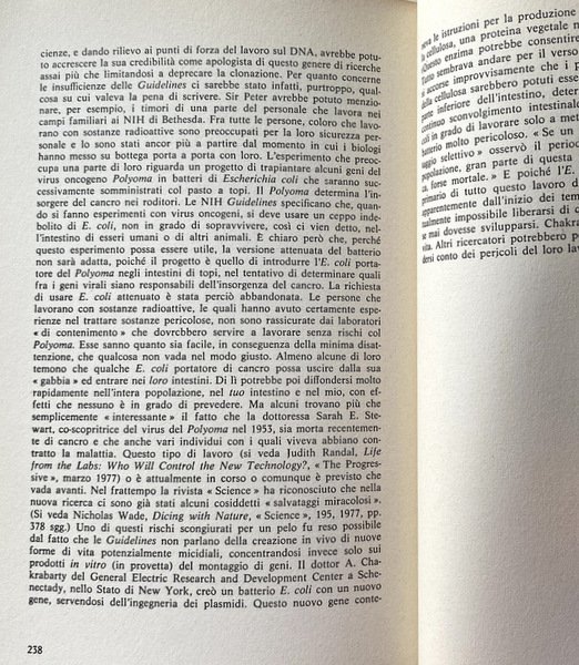 Soggetti: Scienze naturali, Ingegneria Genetica, Biologia molecolare, Clonazione umana, Scienza, Progresso scientifico, Storia, Anni Sessanta, Anni Settanta, Esperimenti, Divulgazione scientifica, Libri Vintage Fuori catalogo, Collezionismo, Saggi, Bioetica, Etica, Morale, Gravidanza, Riproduzione, Bibliografia, Rivelazioni, Informazione scientifica, Esperimenti, Topi, Animali, Vitro, Vivo, DNA, Codice genetico, RNA, Trapianto, Geni, Virus, Cromosoma, Replicazione, Batteri, Polyoma, Escherichia Coli, Doppia elica, Leggi, Norme, Impianti, Embrioni, Richard Davis, Andrew R.L. McNaughton, Bufale, Bestsellers, Casi editoriali americani, Metodo Shettles, Bambini, Cancro, Max, Ovuli, Cellule somatiche, Sparrow, Maternità, Madri surrogate, New York Post, Derek Bromhall, Diffamazione, JB Lippincott, Fecondazione artificiale, Inchieste, Natural sciences, Genetic engineering, Molecular biologists, Human cloning, Science, Scientific progress, History, Sixties, Seventies, Experiments, Scientific dissemination, Out of print books, Collecting, Essays, Bioethics, Ethics, Morals, Pregnancy, Reproduction, Bibliography, Revelations, Scientific information, Experiments, Mice, Animals, Alive, Genetic code, Transplant, Genes, Viruses, Chromosomes, Replication, Bacteria, Double helix, Laws, Standards, Implants, Embryos, Buffaloes, Bestsellers, American editorial cases, Shettles method, Children, Cancer, Eggs, Somatic cells, Maternity, Surrogate mothers, Defamation, Artificial insemination, Investigations