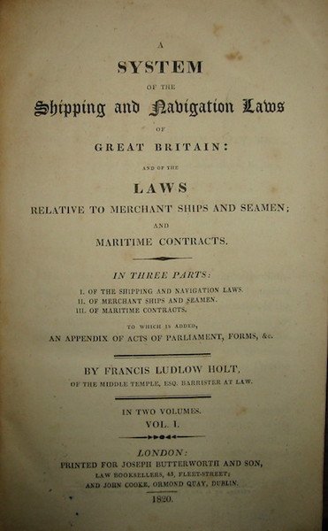 A System of the Shipping and Navigation Laws of Great Britain: and of the Laws relative to merchant ships and seamen; and maritime contracts. In three parts: I. Of the shipping and the navigation laws. II. Of merchant ships and seamen. III: Of maritime contracts. To which is added, an appendix of acts of parliament, forms, &c. In two volumes. Vol. I (e Vol. II)
