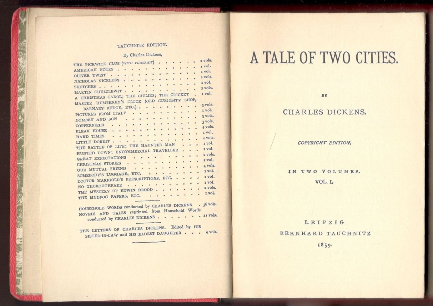 Due volumi in 16°, pp. x, 314; vi, 293, (1). Tela rossa degli anni 30 del '900 con titoli oro sul dorso. Copia in buono stato. Collection of British and American Authors, vol. 479, 480. Copyright edition.