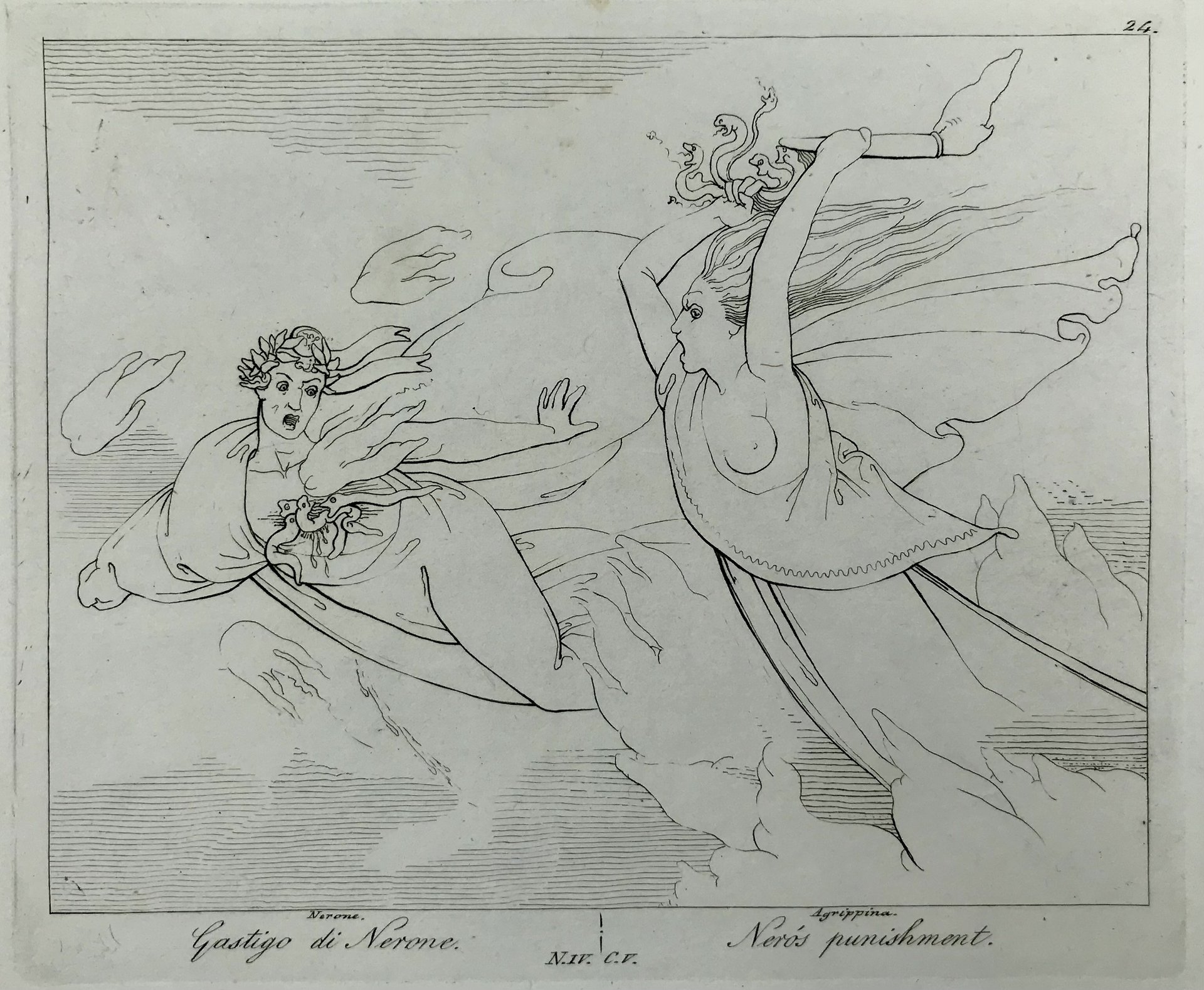 Non comune prima edizione di questo album realizzato dal disegnatore romano Vincenzo Gajassi (1811-1861) ispirato alle Notti romane di Alessandro Verri. Ognuna delle quaranta composizioni è accompagnata dalla didascalia in italiano e in inglese, e l’ultima riporta il nome dell’artista e la giovane età alla quale egli realizzò l’opera. La serie di incisioni è dedicata allo scultore danese Bertel Thorvaldsen e mostrano in maniera eloquente affinità stilistiche con i lavori del neoclassicista John Flaxman.