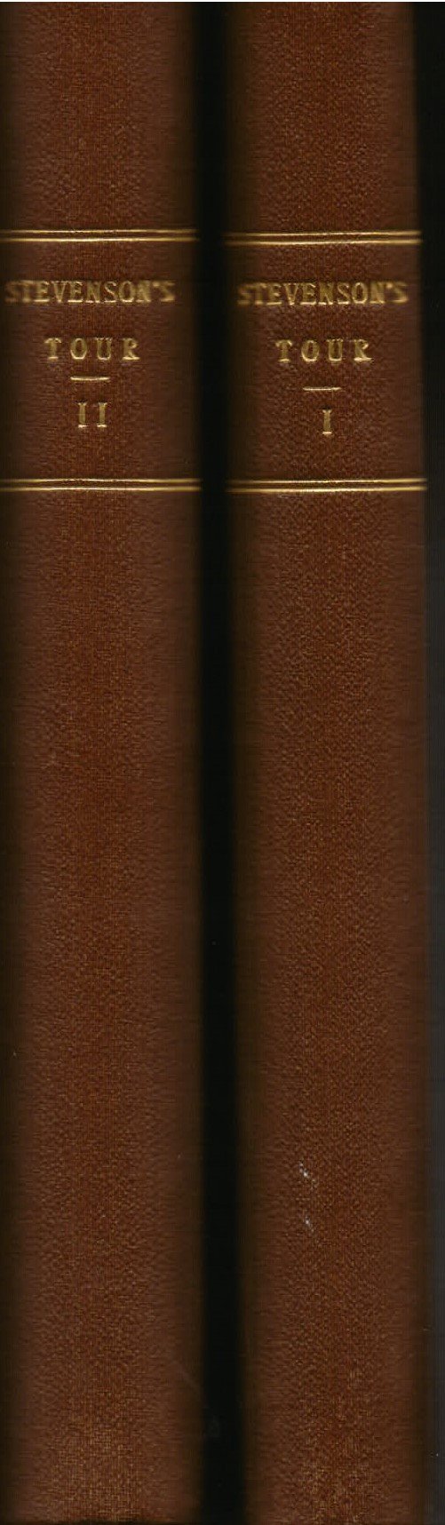 2 voll. in-8° (220x138mm), pp. XI, 424, (4); (4), 425-862 [paginazione continua], (6); legatura moderna m. tela con titolo in oro ai dorsi. Piatti, tagli e risguardi decorati a piuma di pavone. Ottimo esemplare. Prima edizione di questo resoconto di viaggi in Francia, Savoia, Italia del Nord, Svizzera, Germania, Olanda, ricchissimo di notazioni geografiche, folkloriche e storico-artistiche e di cenni relativi alle Alpi. Fra le numerose località toccate: Fontainebleau, Lione, Chambéry, il Moncenisio, Susa, Torino, Milano, il Lago di Como, Varese, il Lago Maggiore, il Sempione, Domodossola, Sion, Martigny, il Mer de Glace, il Monte Bianco, il Vaud, Vevey, Losanna, Ferney-Voltaire, Ginevra, Neuchatel, Friburgo, Berna, Thun, Lucerna, Zurigo, Mannheim, Francoforte, Coblenza, Colonia, Lovanio, Bruxelles, Gand, ecc. Lo Stevenson (Norwih, 1784-1853) fu antiquario, numismatico, giornalista, editore ed erudito. 'In 1817 he printed for private circulation Journal of a Tour through part of France, Flanders, and Holland, including a visit to Paris and a walk over the Field of Waterloo in the summer of 1816. This work was dedicated to the Society of United Friars of Norwich, a literary society of which he was almost the last survivor. In 1827 he published in two volumes A Tour in France, Savoy, Northern Italy, Switzerland, Germany, and the Netherlands, and in the same year was elected a fellow of the Society of Antiquaries.' (George Clement Boase in Dictionary of National Biography, 1885-1900, Volume 54). Wäber, 63. Manca al Neate e al Perret.