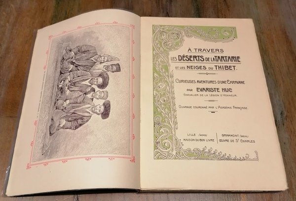 (Tibet - Esplorazioni - Viaggi - Asia) In 4°, brossura editoriale illustrata, pp. 501,(1), con molte illustrazioni nel testo anche a piena pagina (quest'ultime sono inquadrate entro una doppia cornice tipografica a colori) raffiguranti paesaggi, riti religiosi, feste, personaggi. Evariste Huc viaggiò in Asia Centrale fino al Tibet negli anni 1844 -1846, tra i missionari che visitarono questo paese fu senz'altro il più attento osservatore ed il primo a mettere piede a Lhasa dall'epoca della chiusura delle missioni cristiane più di un secolo prima. Volume in ottimo stato di conservazione, parzialmente intonso.