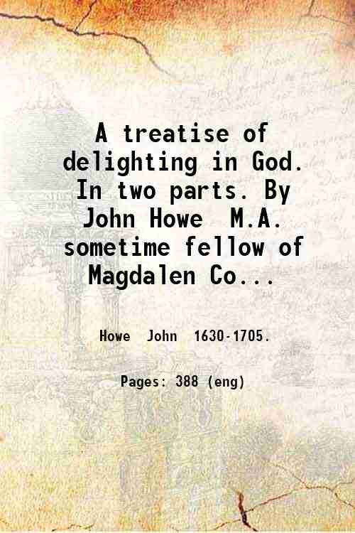 A treatise of delighting in God. In two parts. By John Howe, M.A., sometime fellow of Magdalen College, Oxon. 1674