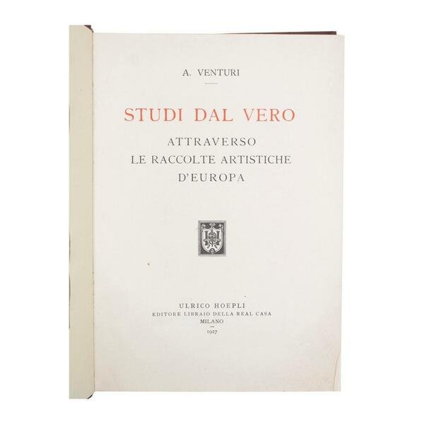 Autore: A. Venturi Titolo: Studi dal vero Sottotitolo: Attraverso le raccolte artistiche d'Europa Edizione: Ulrico Hoepli Editore - Libraio della Real Casa - Milano 1927 Dimensioni: 18 x 25 cm c.a. Pagine: 415 Copertina: Brossura Condizioni: Buone come da foto
