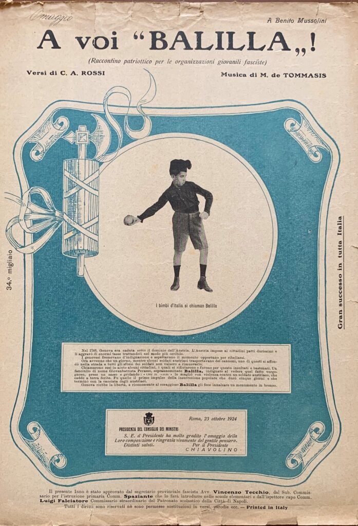 A voi Balilla! Raccontino patriottico per le organizzazioni giovanili fasciste (Spartito musicale).