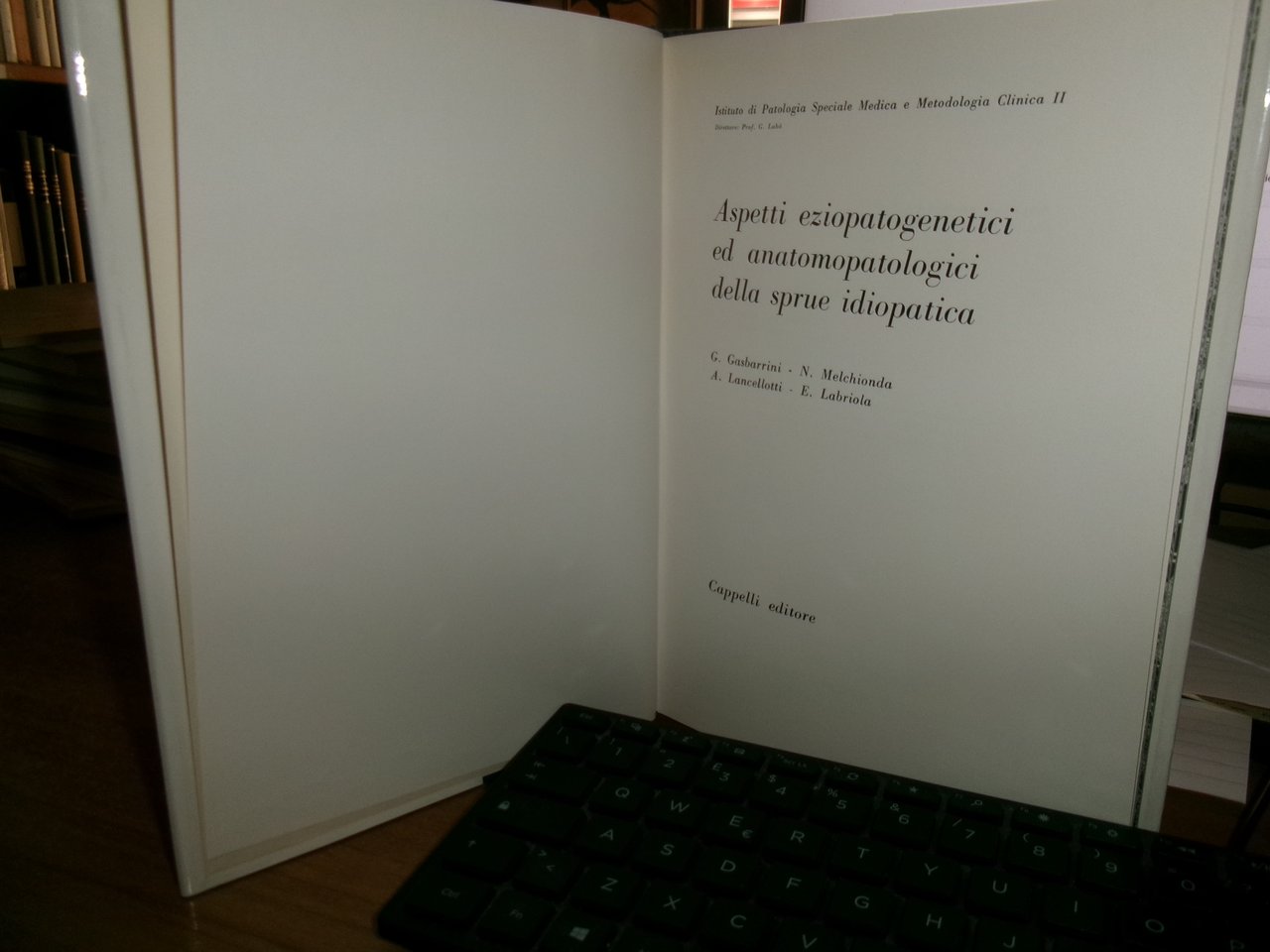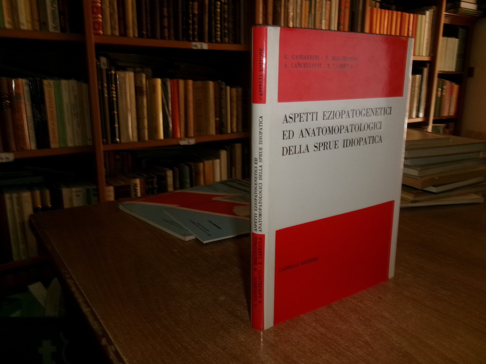 AA. VV. Aspetti eziopatogenetici ed anatomopatologici della sprue idiopatica. Bologna, Cappelli Editore, 1966. In-8°, tela edit. bleu con titoli in oro, sovracopertina. 154 pp. con 34 tavole n.t. Ottimo stato con dedica al Prof. Magnani nella prima bianca. Uff. C - III - 4