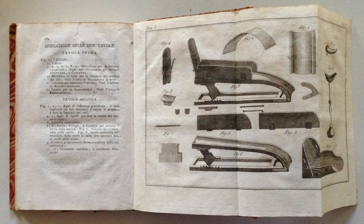 AA. VV., Dizionario Chirurgico Tomo Primo A-C Nuova Stamperia, Venezia, 1794; cm 20x13; pp. 184; tomo primo lettere A-C; con 2 tavole ripiegate con strumenti medici in chiusura di testo; cartonato ed. piatti marmorizzati. Condizioni di conservazione Esemplare in buono stato con leggere tracce d'uso; piatti e dorso con minime abrasioni; angoli leggermente smussati. SETT168.L15242 MT