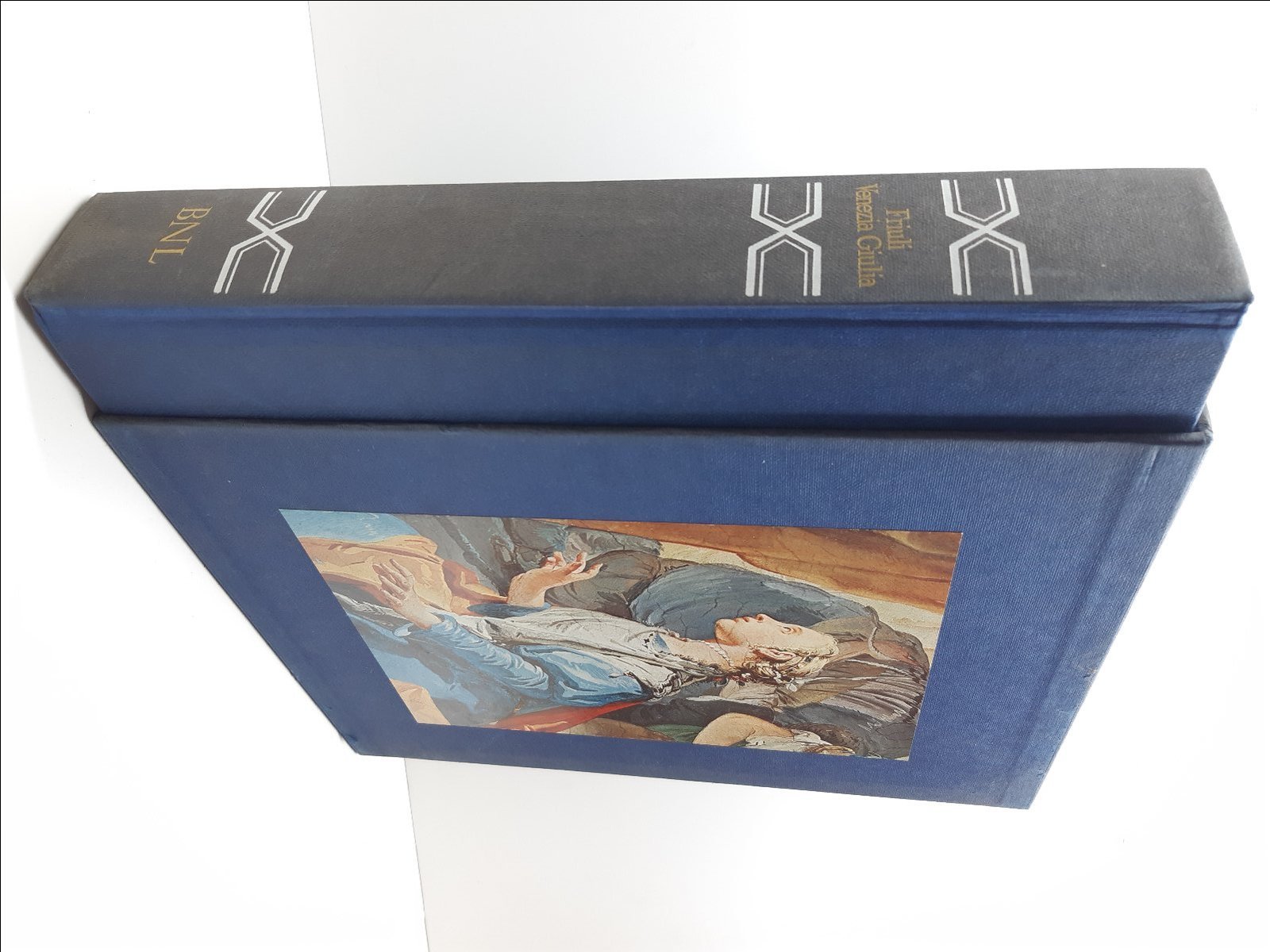 cofanetto rigido editoriale in discrete condizioni con alcune spellature al margine inferiore dei piatti, alcune sporcizie piatti, una rottura al margine superiore del cofanetto di cm 11, legatura rigida in tela blu con fregio al piatto anteriore e titolo al dorso, dorso leggermente brunito, interno in buono stato, fogli di guardia illustrati, il numero pagine 584 + indice generale dimensioni cm 33 x 26 x 6