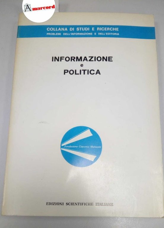 AA.VV., Informazione e politica, ESI, 1984, a cura di Carcagni Angelo, in-8, brossura, pp.156. Atti del seminario di studio organizzato il 17 dicembe 1983 dalla "Fondazione Giacomo Matteotti" dalla rivista "Tempo presente" e dal "Circolo della Galleria" di Milano.
