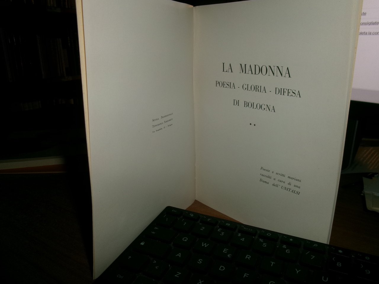 AA. VV. LA MADONNA poesia gloria difesa di Bologna. Bologna, Scuola Professionale, Tipografia Sordomuti via Nosadella, 1958. In-8°, cart. edit. 122 pp. con alcune illustrazioni n.t. In ottimo stato/come nuovo. Neg. storia 2