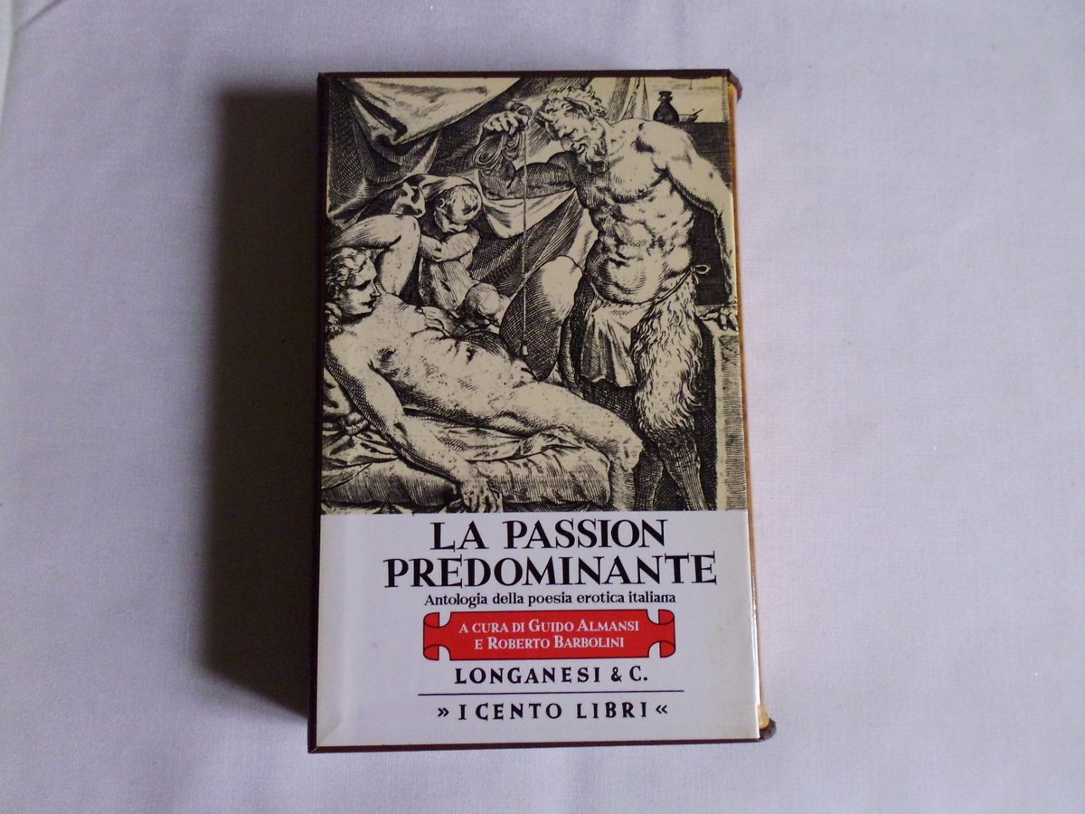 AA VV, La Passion Predominante Antologia della poesia erotica italiana Longanesi & C.e, Palermo, 1986; cm 19,5x12,5; pp. 514; ill. n. t. a col.; cartonato similpelle edit. muto con titoli in oro al dorso; sovraccoperta edit. in acetato muta; cofanetto cartonato fig. a col. Condizioni di conservazione Esemplare in ottime condizioni di conservazione. Minime tracce d'uso. Collana I Cento Libri". SETT206.L17721G "