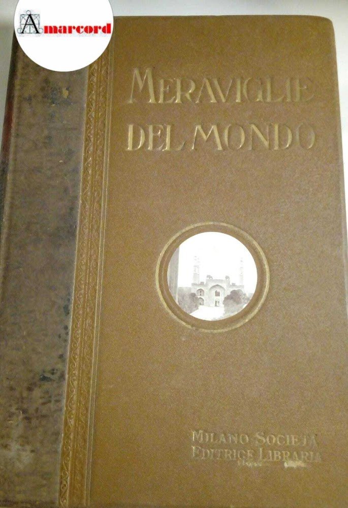 AA.VV., Le meraviglie del mondo. Illustrazione popolare delle più portentose opere della natura e dell'uomo esistenti oggidì a cura degli illustri viaggiatori Sir Harry Johnston, Alan H. Burgoyne, Perceval Landon, J. Thomson., Società editrice libraria, in-8, mezza pelle con titolo in oro al dorso, 14 tavole a colori applicate su cartoncino f.t., illustrazioni in b/n nel testo, pp.VIII + 598.
