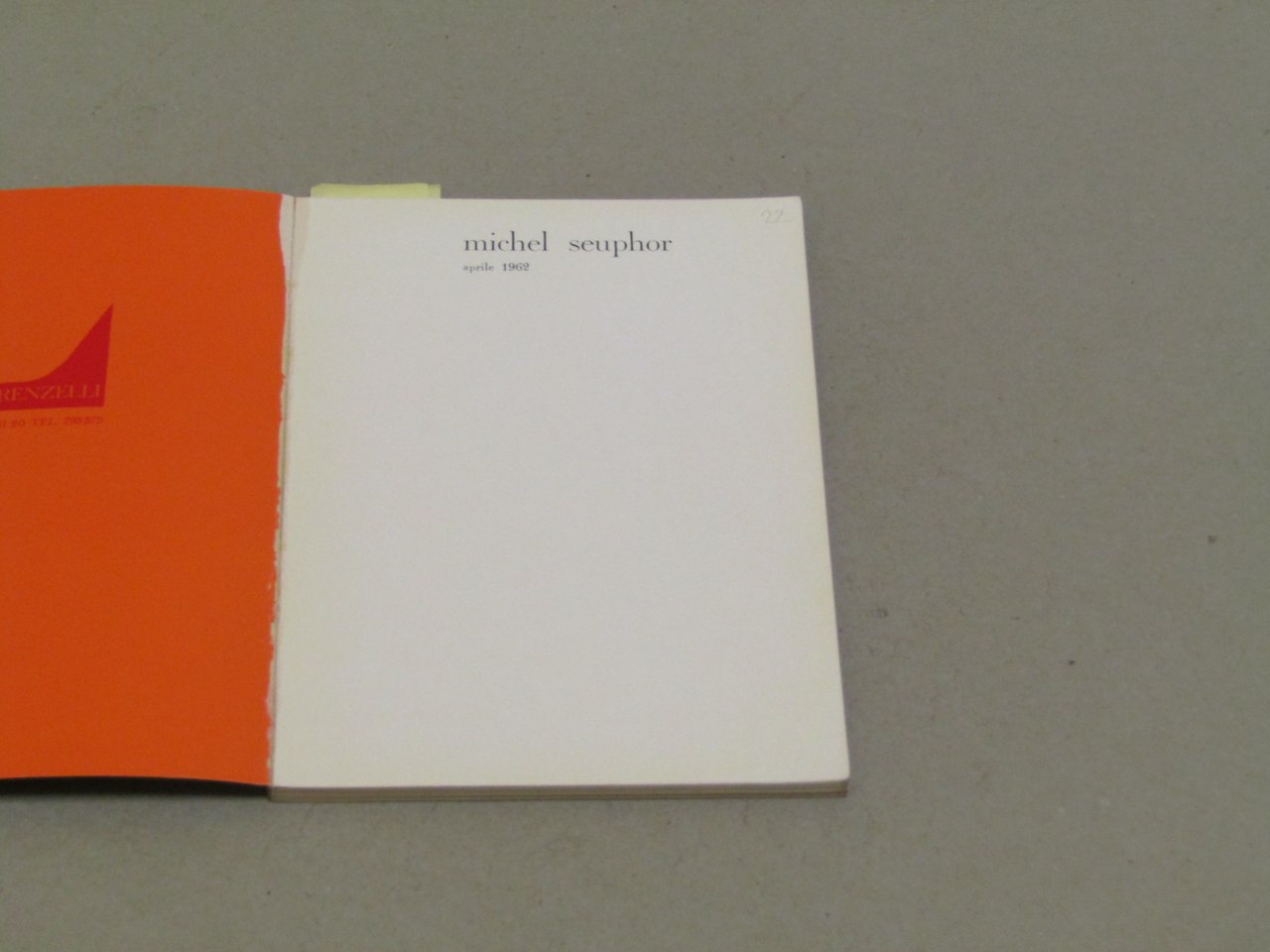 AA. VV. AA. VV. Michel Seuphor. Milano, Galleria Lorenzelli 1962 - I italiano, in ottavo pp. N. D. Catalogo di mostra d'arte contemporanea. Pagine e copertina ingiallite.